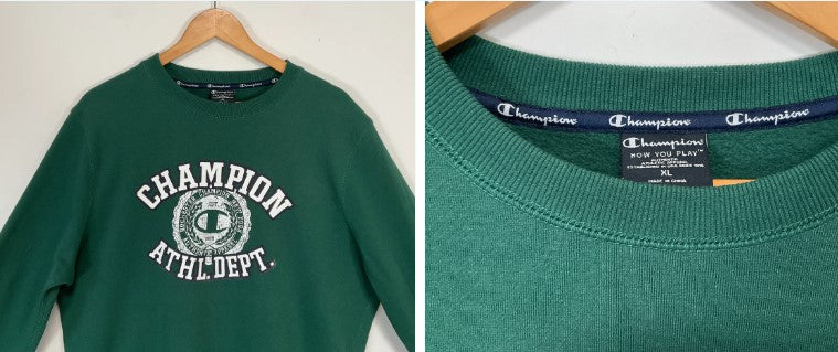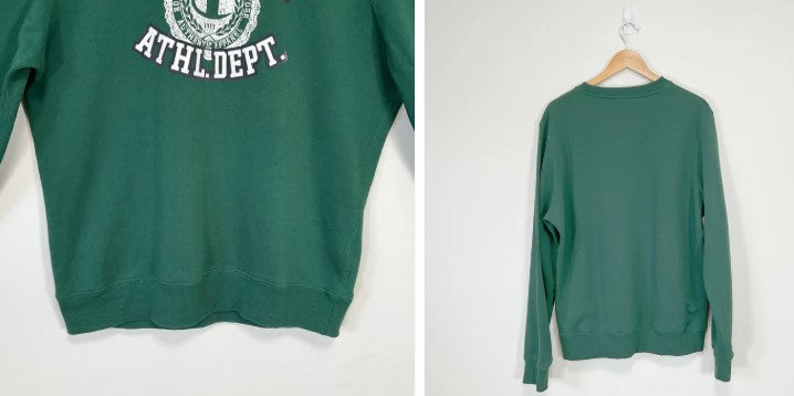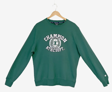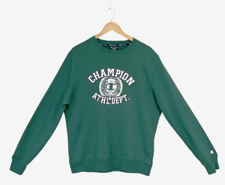 Champion - ATHL.DEPT unisex forest green sports logo long-sleeved sweatshirt. Great condition, loved before but ready for more! Cool preppy college vibes.