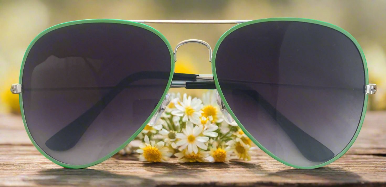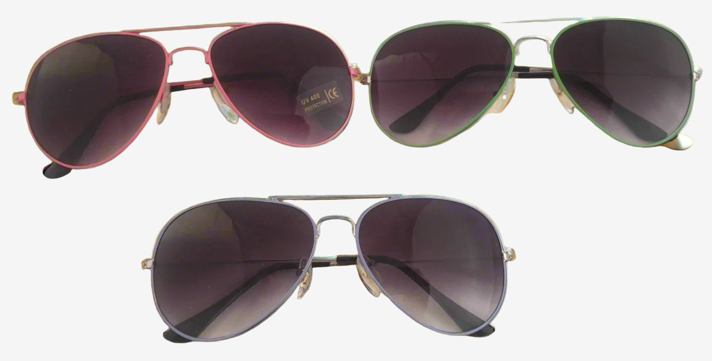 Fab pastel 80s style coloured aviator sunglasses. Fashion sunglasses offering the maximum UV400 protection. Available in hot pink, mint green and purple.