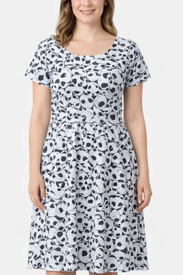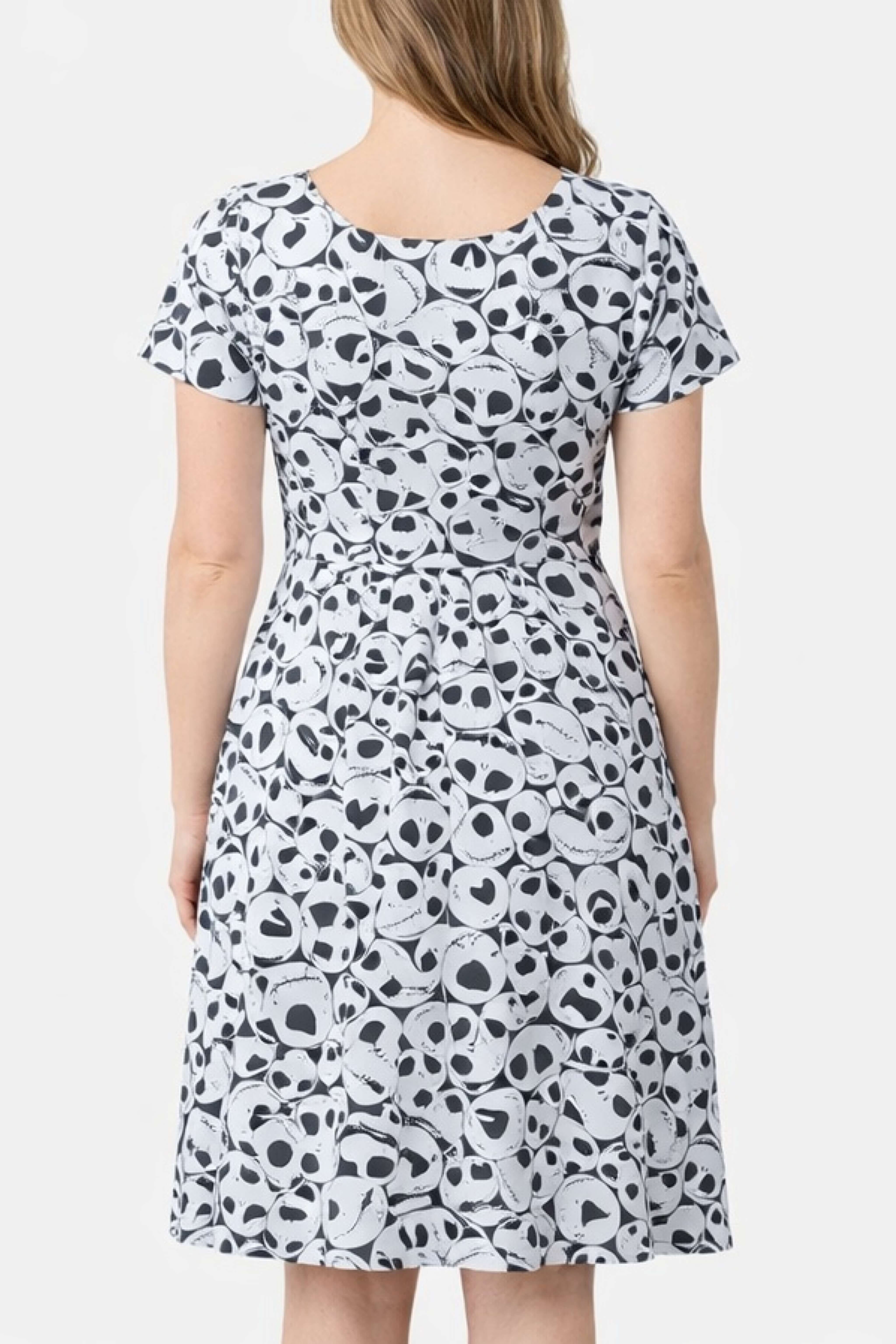 The Jack Skellington Audrey Dress is designed and made in New Zealand using a classic 1950s Audrey-style sewing pattern. This vintage-inspired silhouette blends timeless design with everyday comfort, featuring two functional side pockets and a flattering fit across a wide range of body shapes. Finished in an all-over Jack Skellington print from The Nightmare Before Christmas, it’s a distinctive pop-culture dress designed for year-round wear.