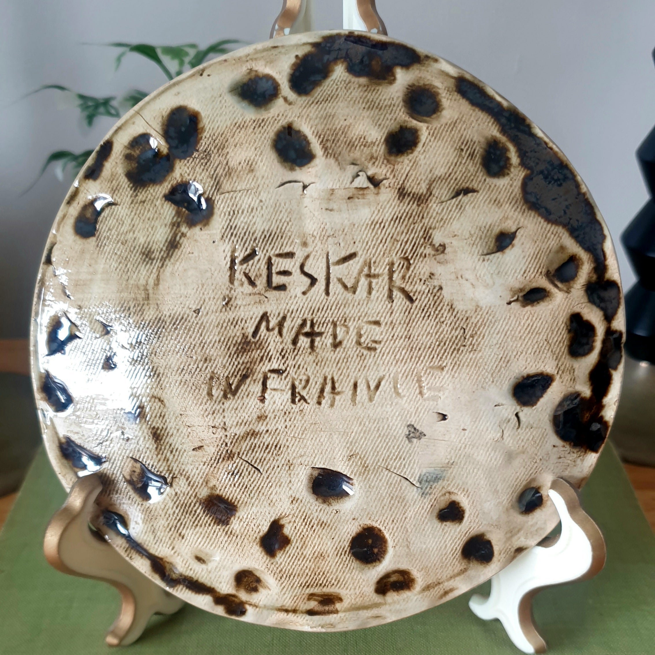 A rare vintage Keskar French modernist pottery plate, handmade in a rustic mid-century style.