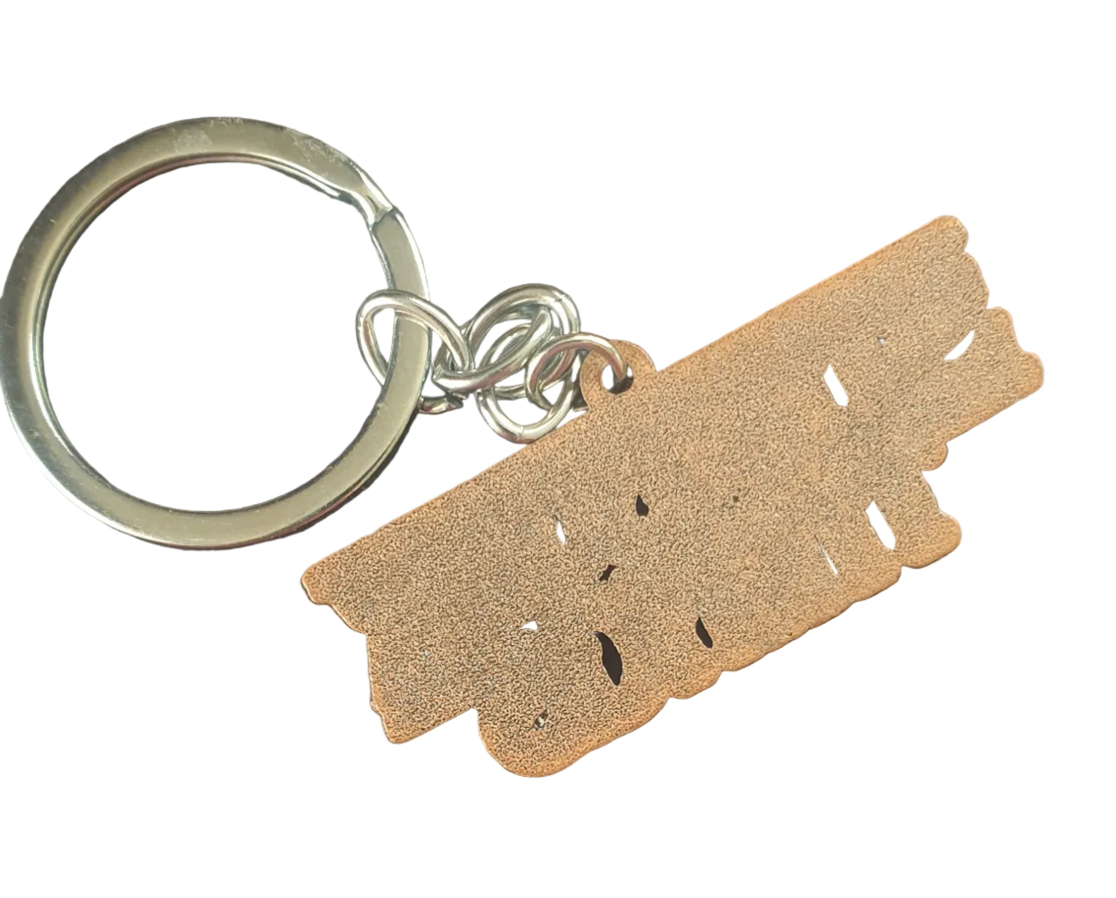 Copper coloured metal keychain/keyring. Measures 5cm x 1.8cm.  This is a brand new item.