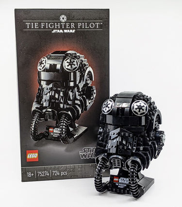 Released in 2020 and retired in 2021, the Lego Star Wars TIE Fighter Pilot Helmet #75274 is part of the original 18+ Helmet Collection — a display-focused series created for adult collectors. There are 724 pieces in this kit.