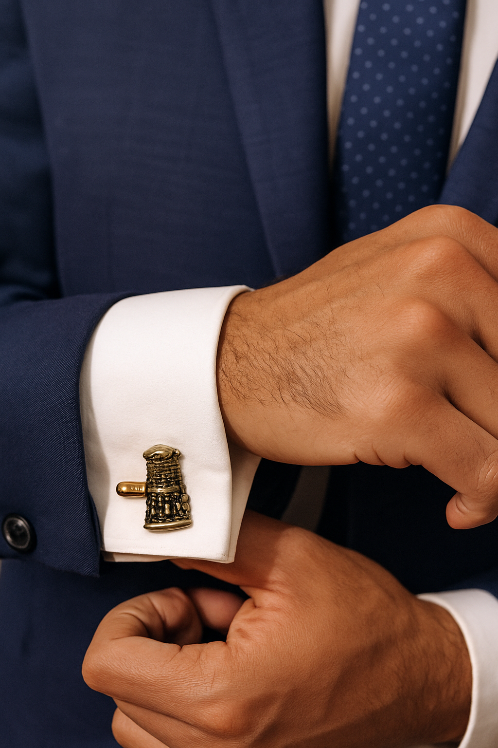 Exterminate boring cufflinks. Super striking bronze metal dalek cufflinks. Approx 1.5cm tall.