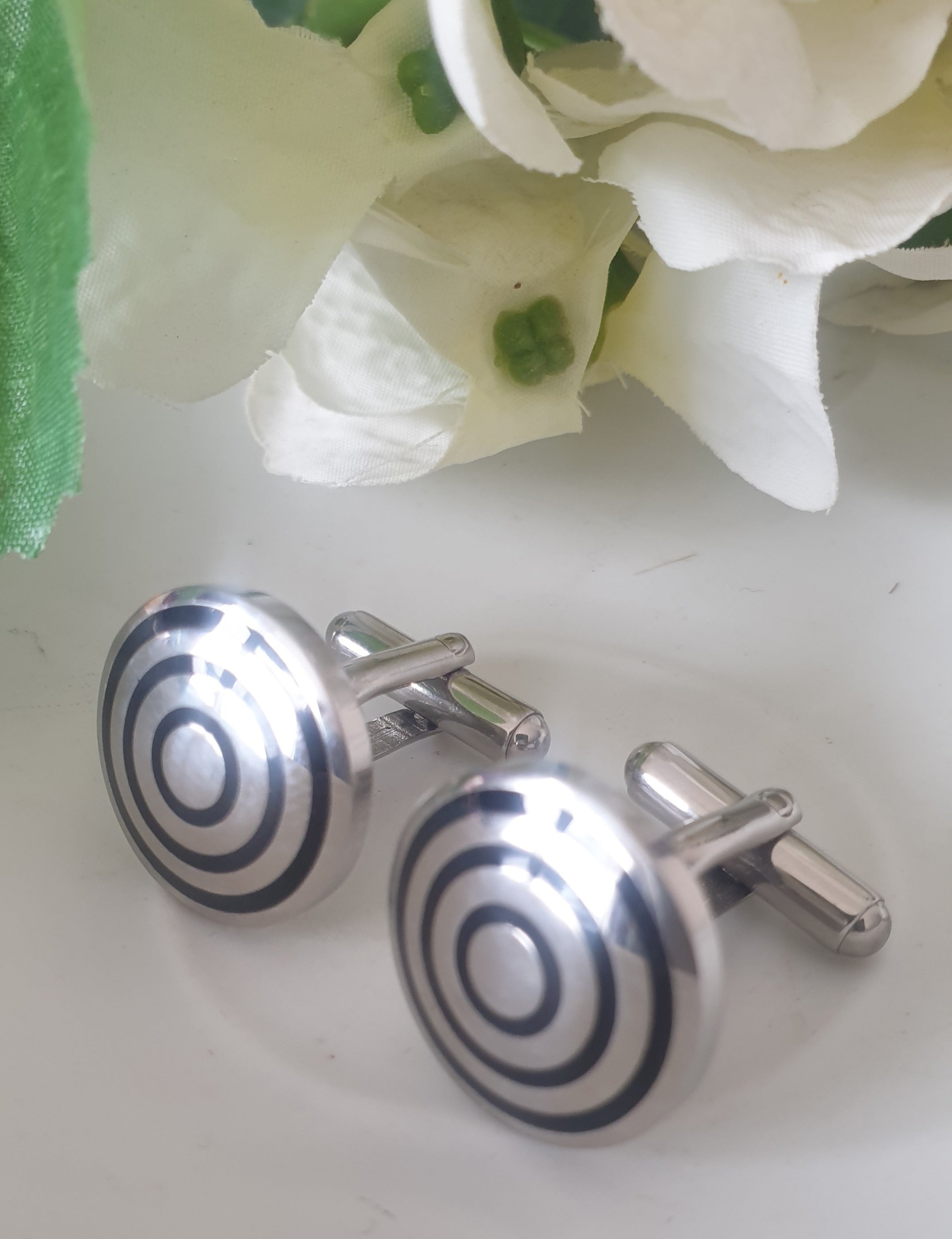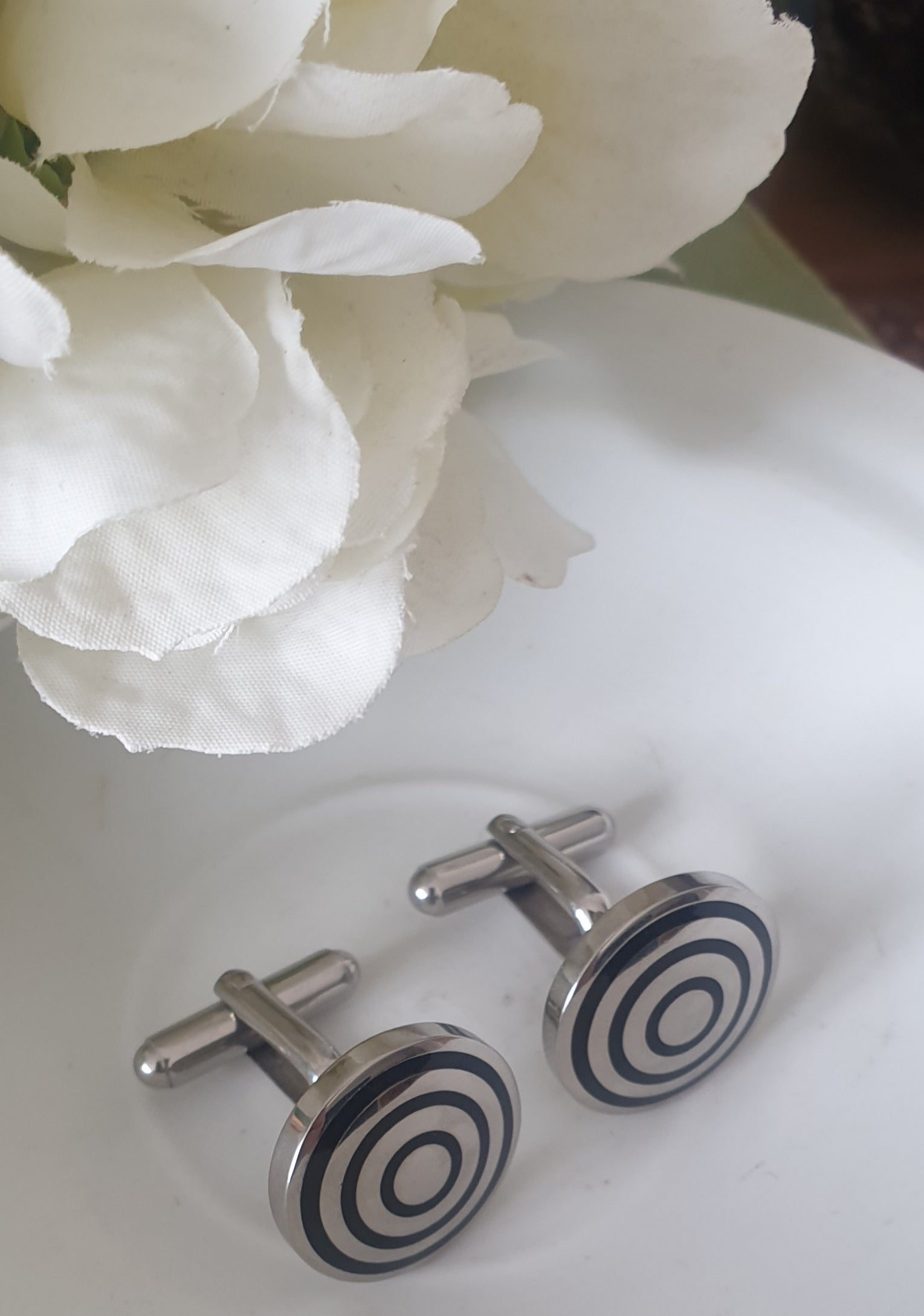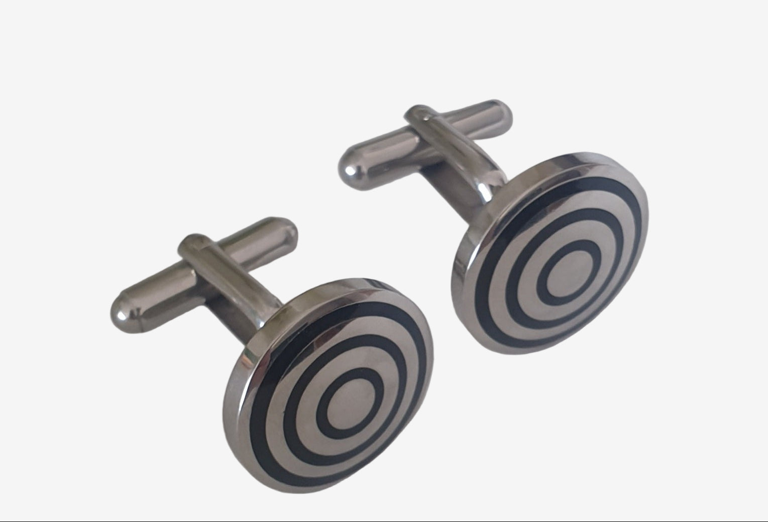 Sharp looking black and silver target circle cufflinks - nice crisp design which will look great for any occasion.