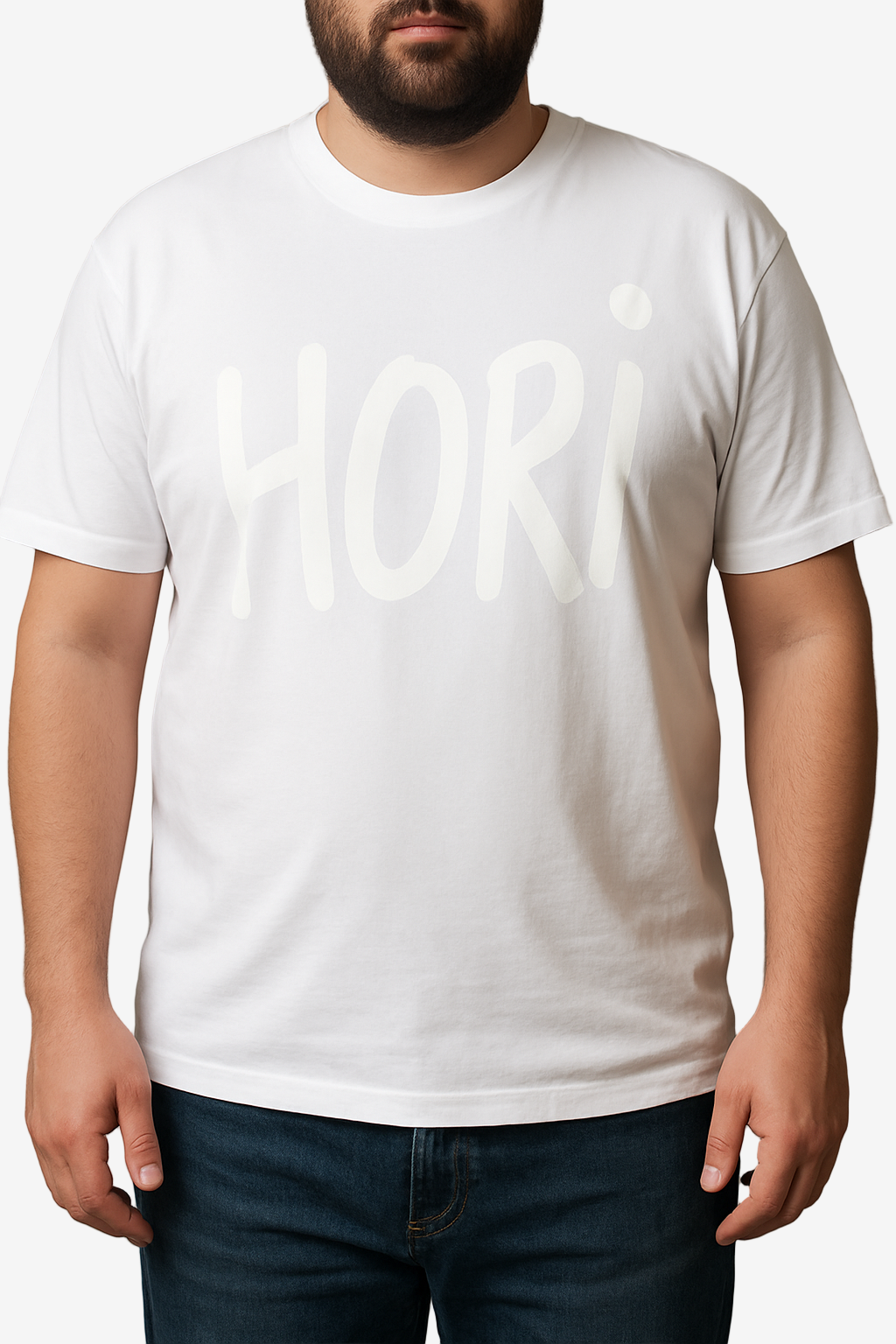 Lovely white tee with Hori logo on the front, also in white. Plain back. 100% Cotton.