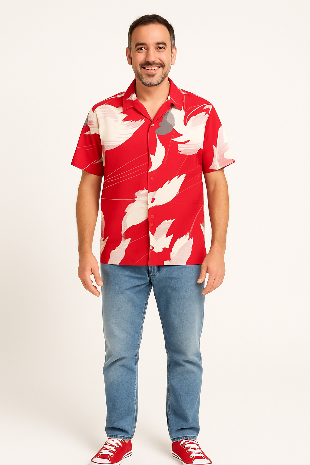 Mens 70s Red Hawaiian Vintage Shirt (2XL)
