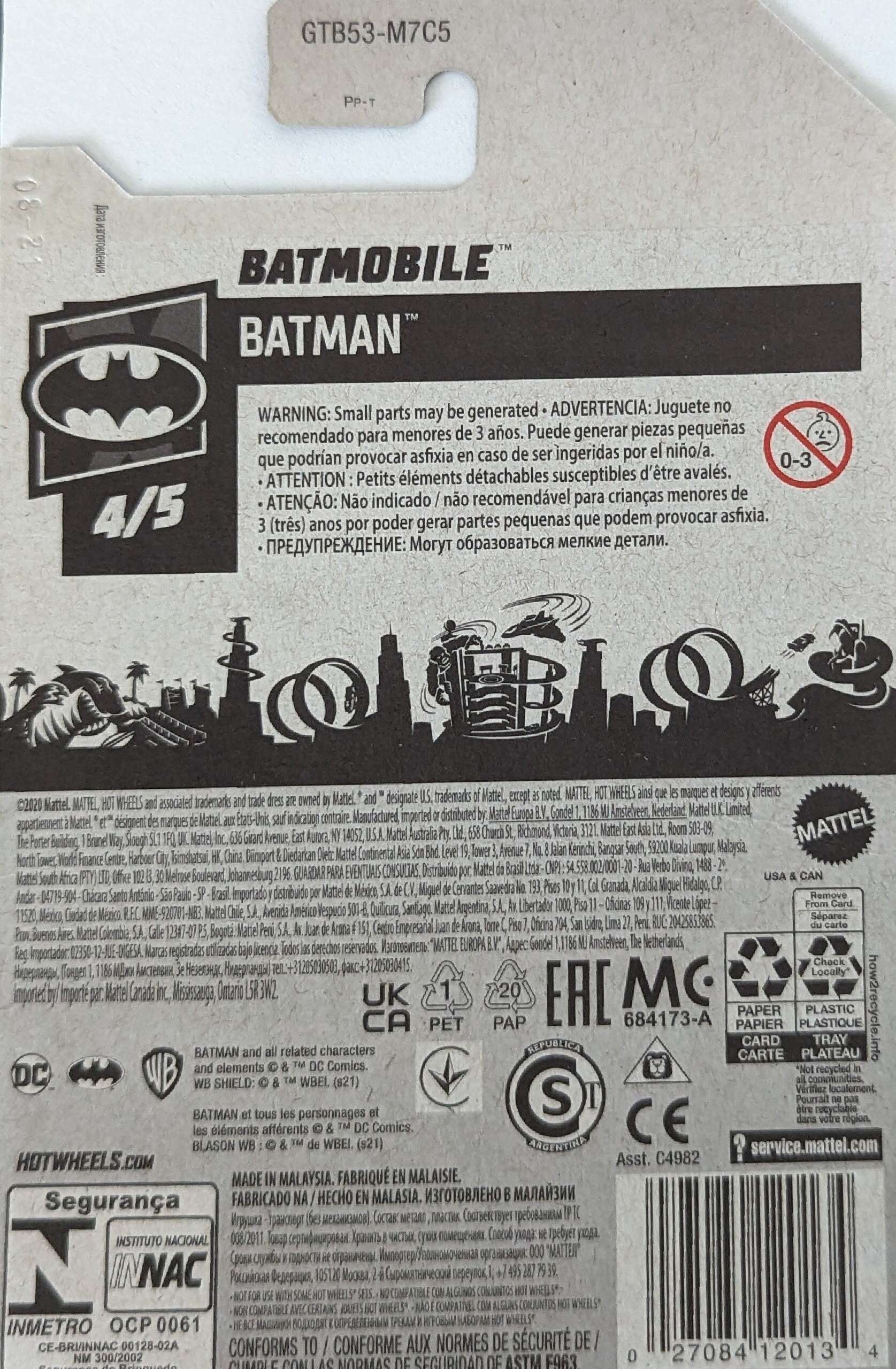 Hot Wheels Batmobile from The Batman movie starring Robert Pattison (2020) 4/5 GTB53-M7C5 - international long card. A Hot Wheels first appearance vehicle.