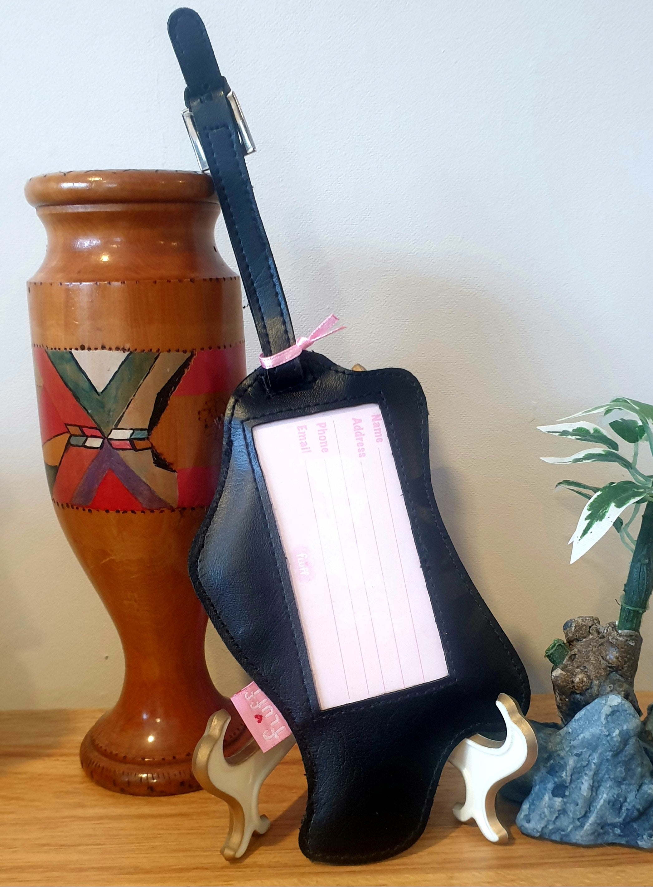 She is approx 16 x 9cm.  Cute cocktail lounge chic! Blank address label on the reverse.  100% PVC with buckle strap attached.