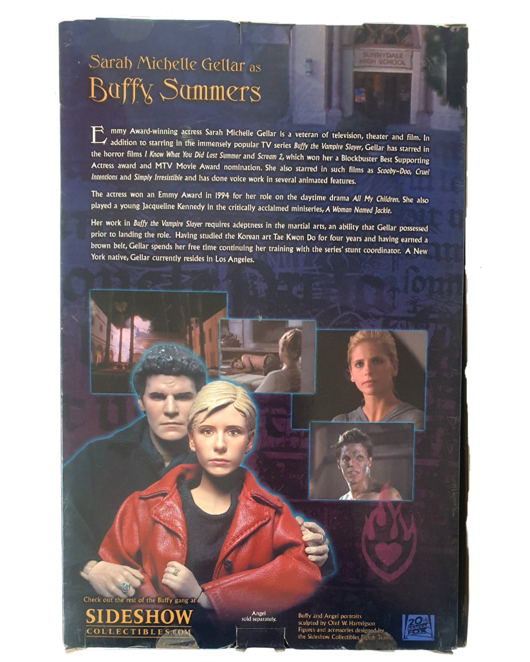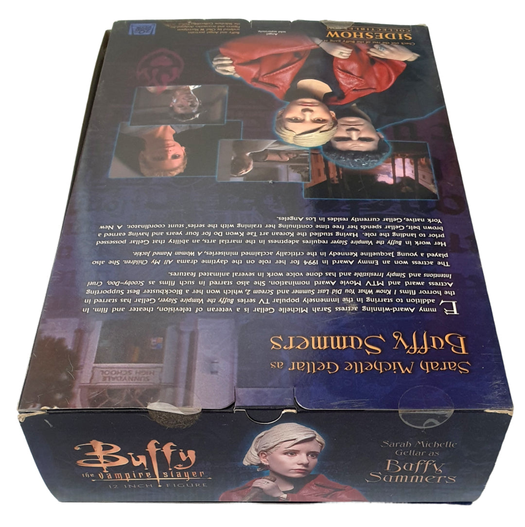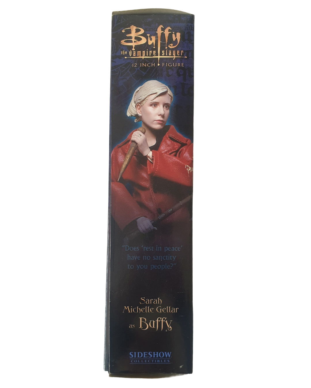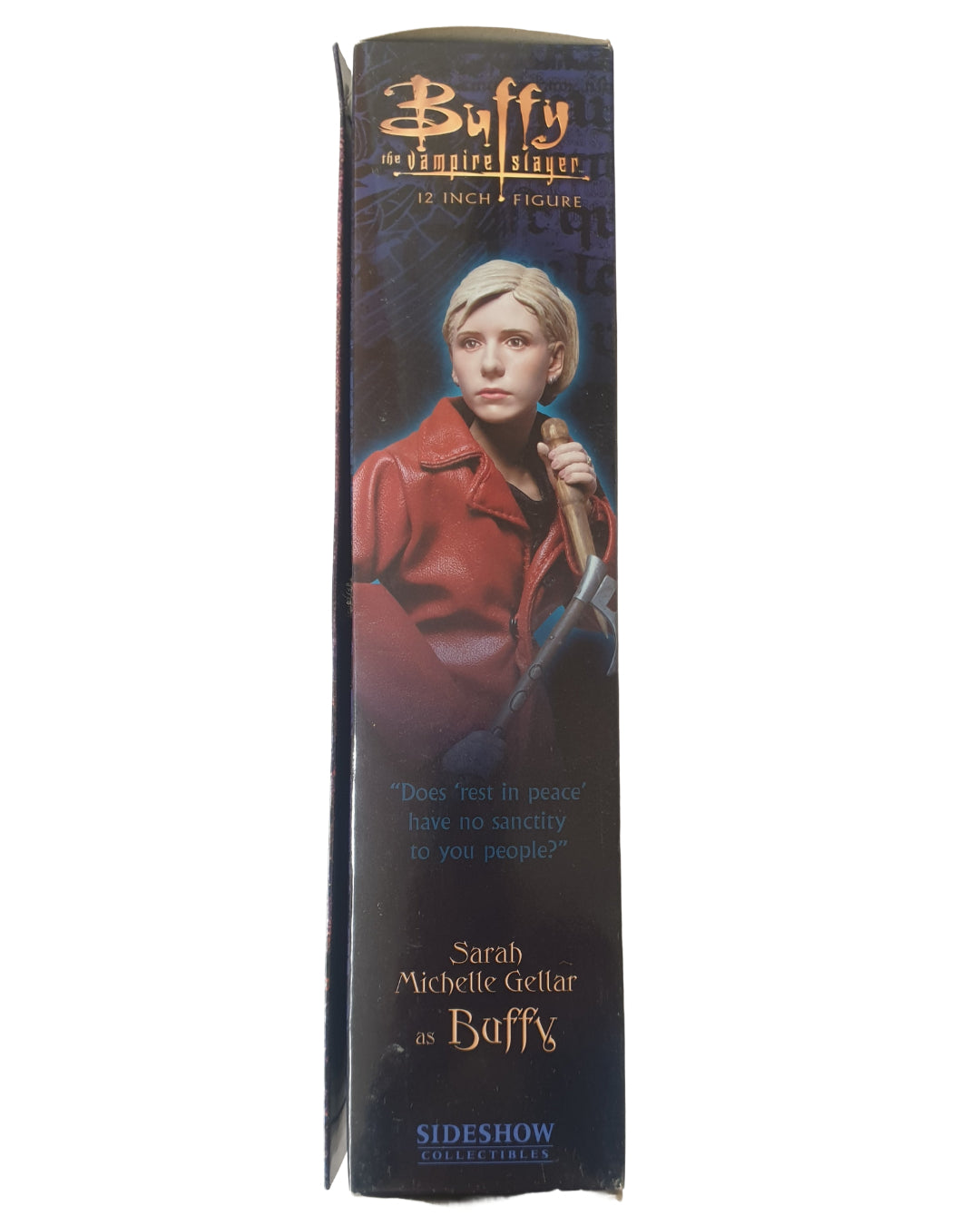 This Buffy the Vampire Slayer 12″ figure by Sideshow Collectibles is a large-scale collector release from 2004, featuring the likeness of Buffy Summers as portrayed by Sarah Michelle Gellar.