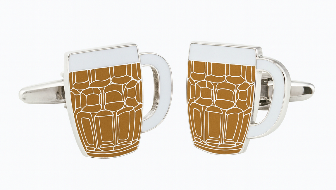 Beer tankard cufflinks. Enamel in a silver metal setting. Drink up! 2.2cm tall.