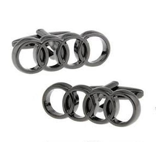A pair of gun metal coloured Audi rings logo cufflinks. Approx 3 x 1cm. Nice gift for the Audi owner or automotive fan.