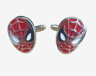 Spider-Man cufflinks featuring the iconic red mask in vibrant enamel with silver metal settings. Perfect for Marvel fans who want to add superhero style to any outfit.