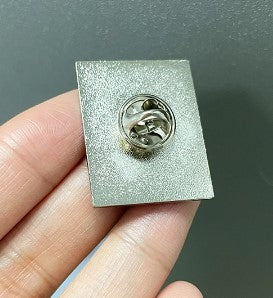 This item is brand new and made from a silver metal alloy backing with a butterfly clasp on the back.