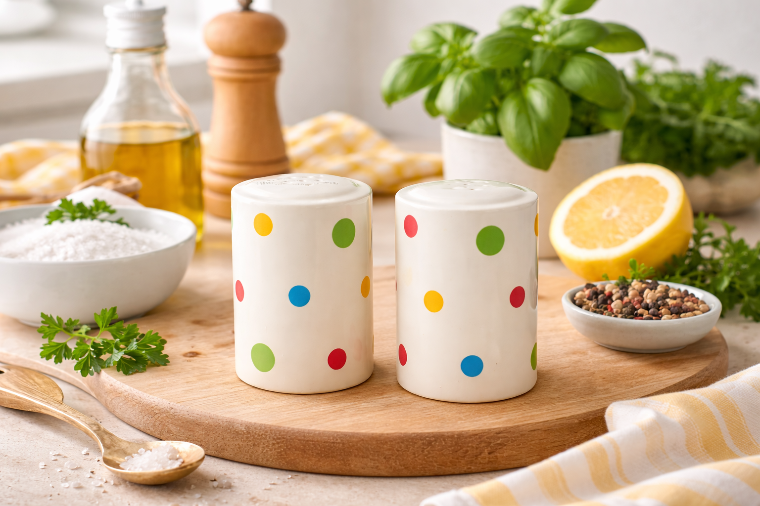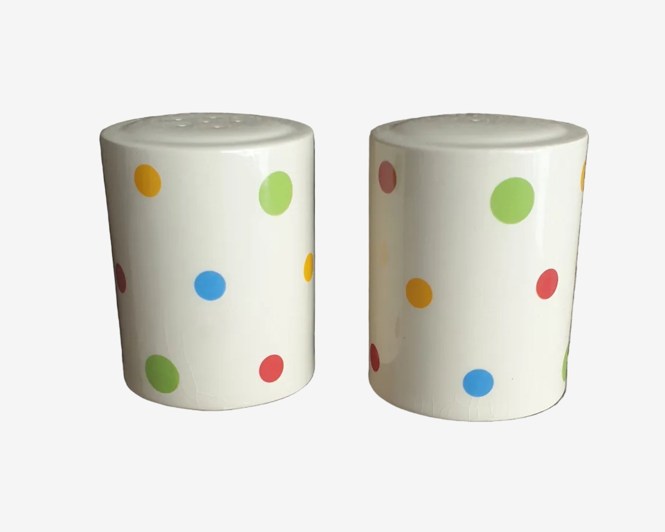 This playful salt and pepper shaker set was designed by Martin Gulliver, known for bold, graphic homeware with a light post-modern touch. Finished in a soft cream glaze with cheerful multicoloured polka dots, these large shakers bring a fun, design-led feel to the table without being loud or kitschy.