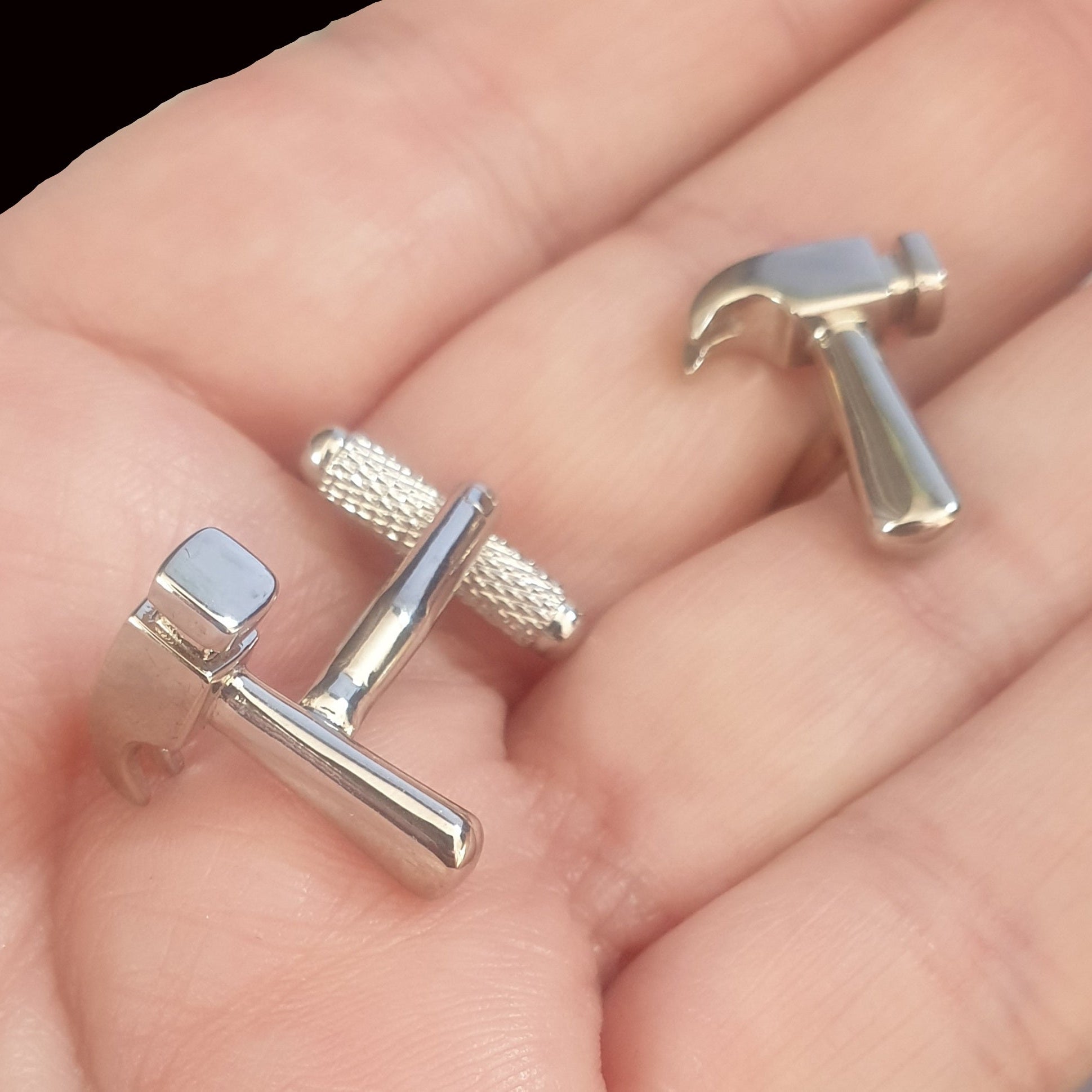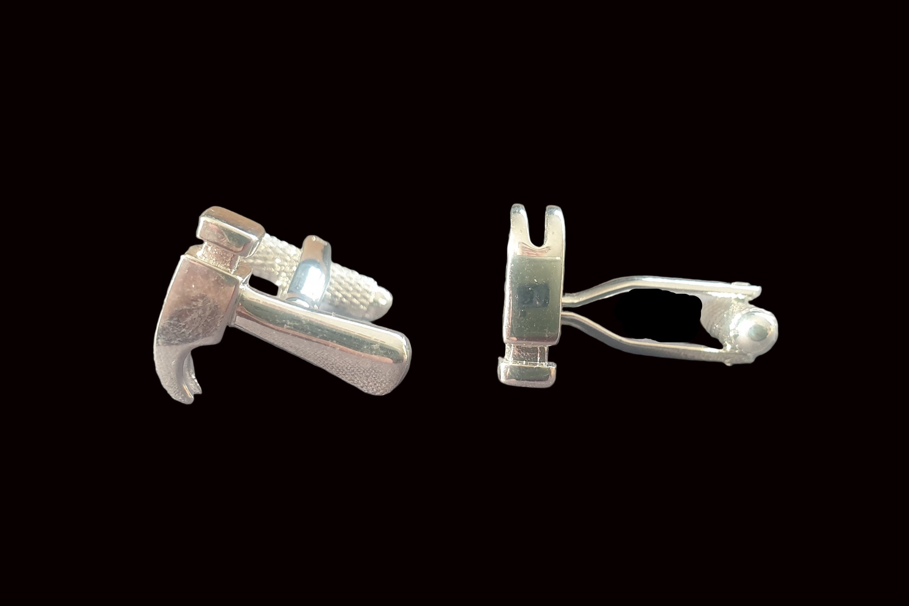 Fun silver metal hammers cufflinks.