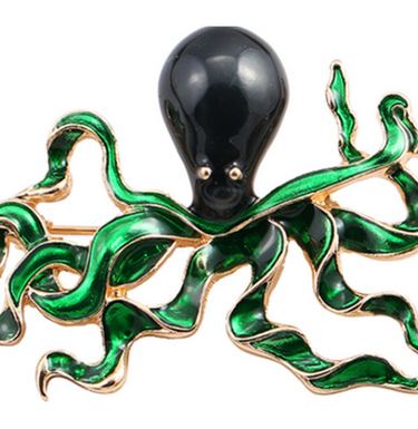 You can dream of undersea wonderlands too when you wear this gorgeous marine beastie brooch in green and black enamels. Gold tone brooch setting and a little vintage style, this cutie is approximately 3cm wide.