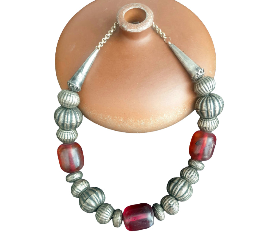 Vintage Ethnic Big Amber Beads Necklace