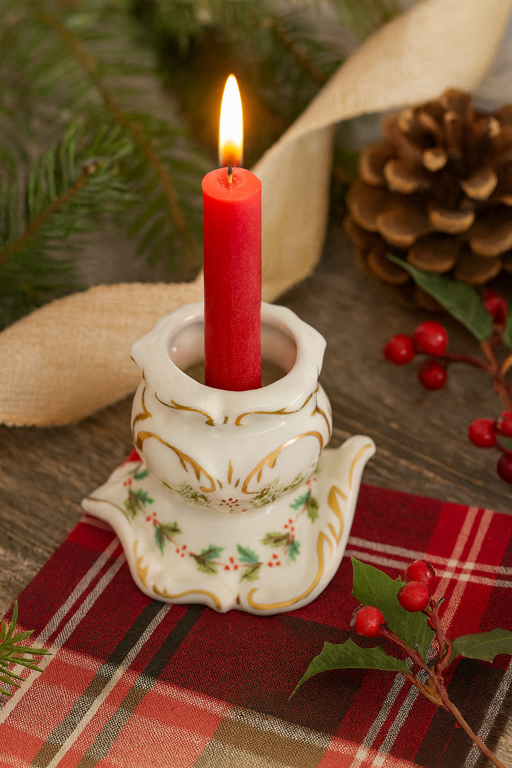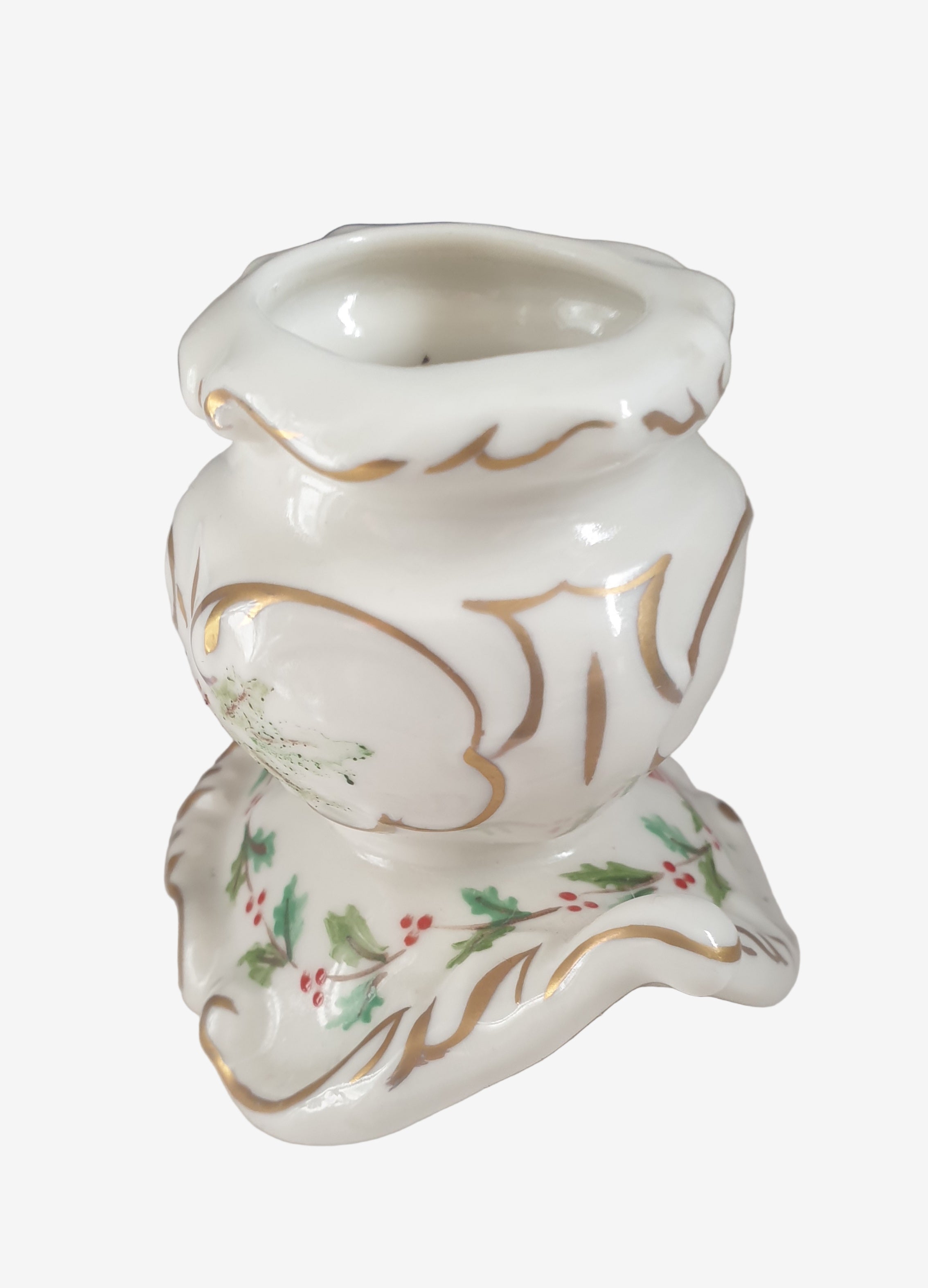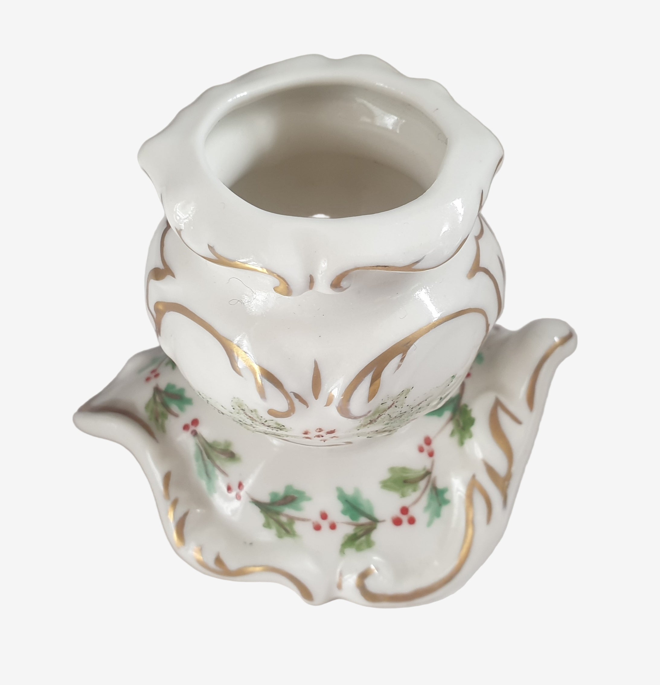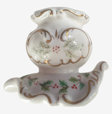 Vintage Irish Dresden Holly-Bow Candle Holder