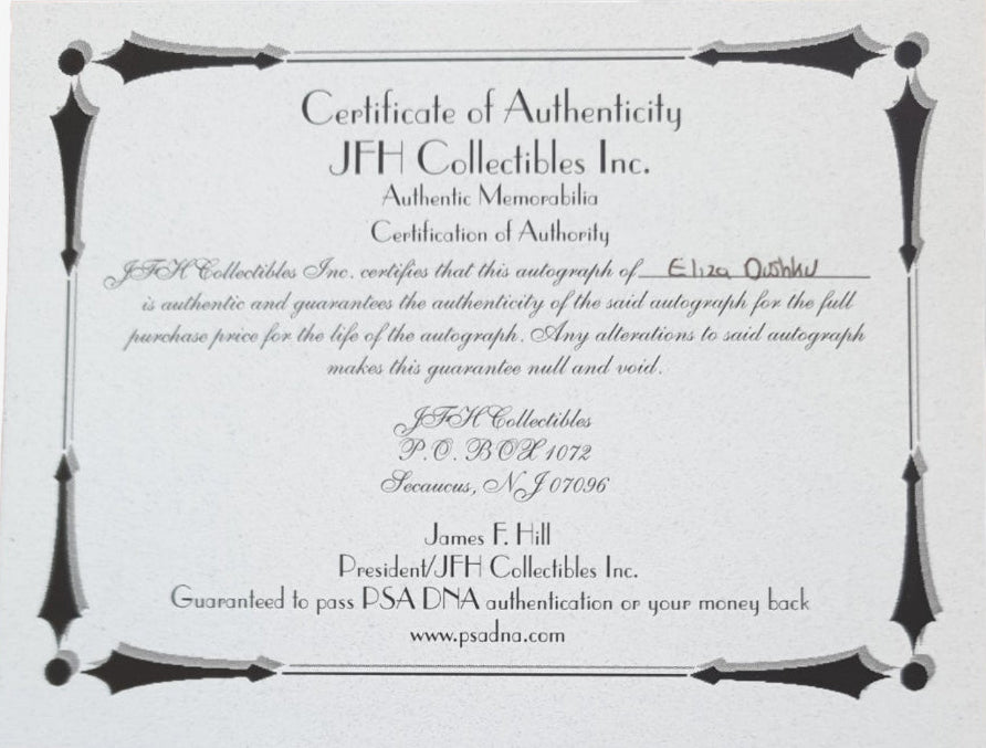 This item is accompanied by a certificate of authenticity from JFH Collectibles Inc., a US-based memorabilia dealer active during the early-2000s convention signing period. While not a premium grader, the COA provides supporting provenance and reassurance for collectors.