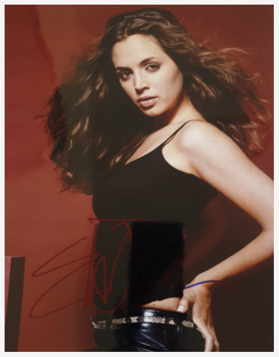 A striking hand-signed promotional photo of Eliza Dushku as Faith, one of the most iconic and complex characters from Buffy the Vampire Slayer. Faith’s rebellious energy and cult-favourite status have made her a standout figure in the Buffy universe, and this image captures that era perfectly.