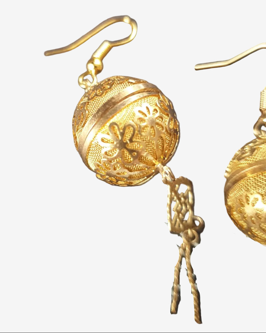 Gold Filigree Sphere Drop Earrings