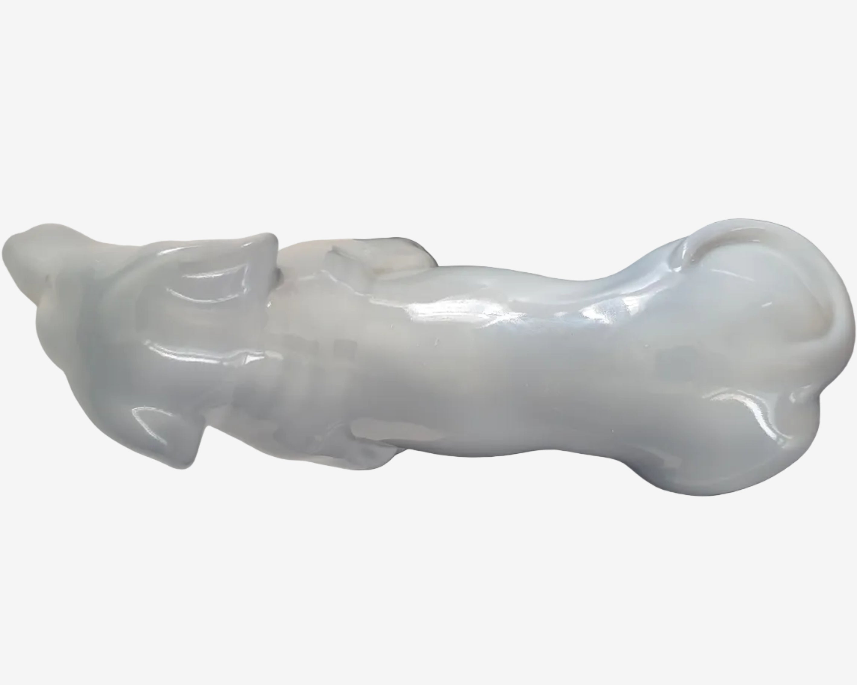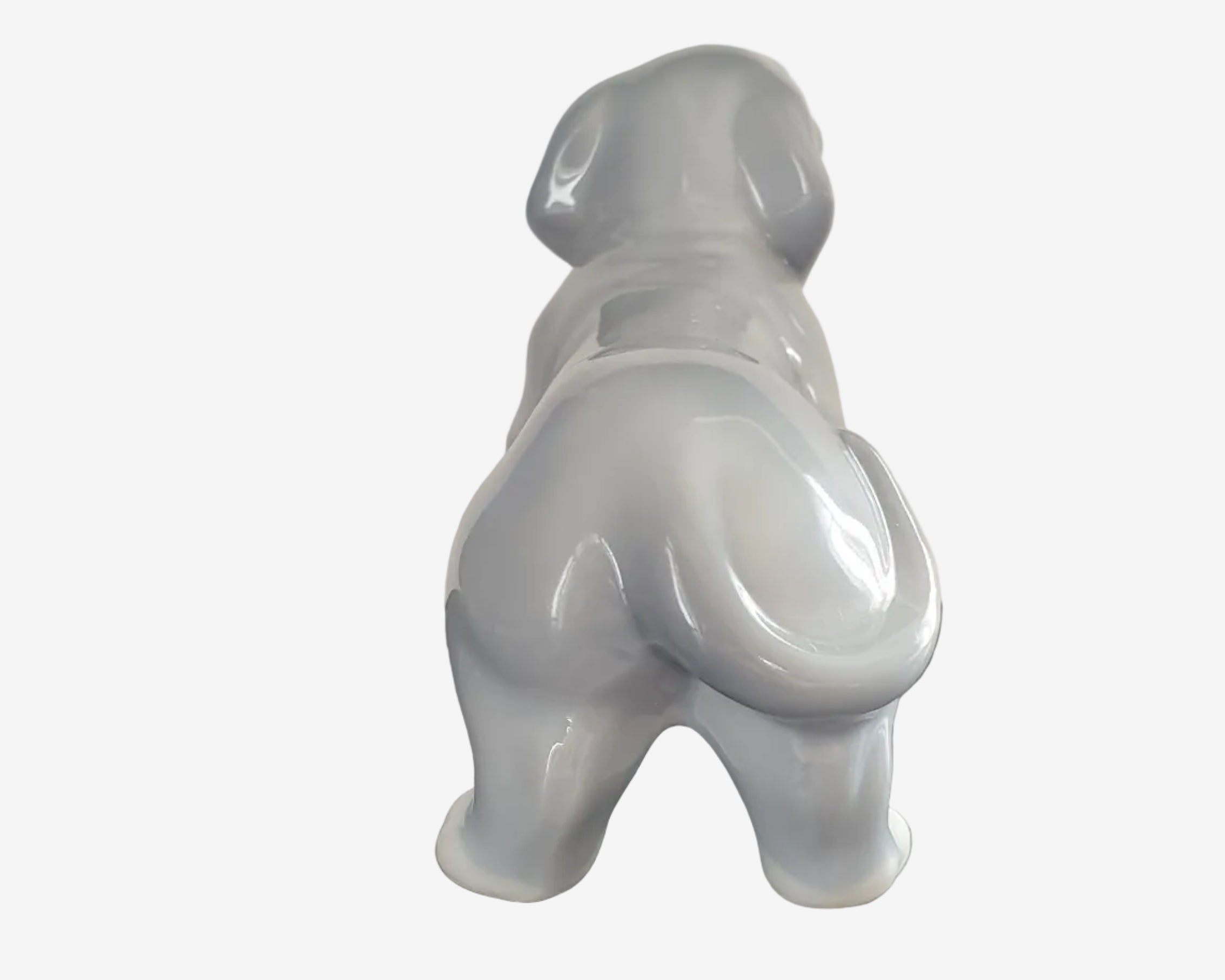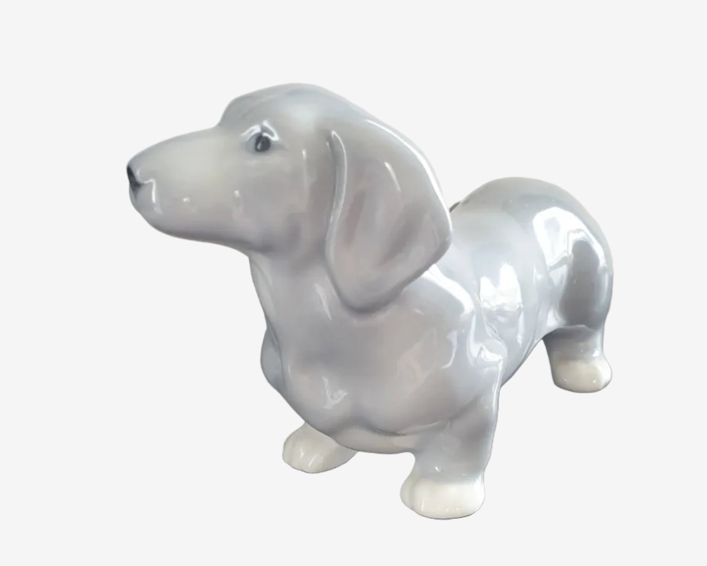 This glossy grey dachshund is full of quiet charm. Just look at that cute butt! Finished in a soft smoke-grey glaze with white paws and gentle detailing, he’s the kind of piece that adds personality without overpowering a space.