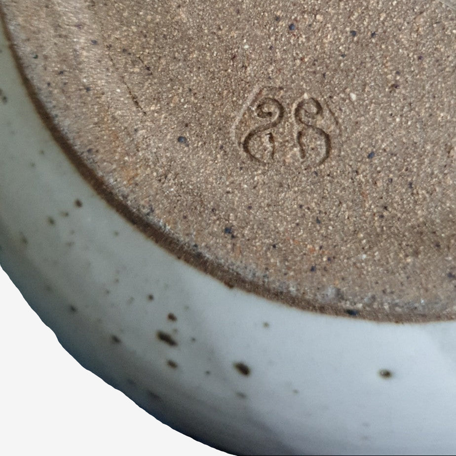 The bowl is signed on the base with a stylised jug mark incorporating the initial “H”. Similar bowls and jugs by the same potter have been found around South Auckland and the Coromandel region, suggesting small-scale local studio production rather than factory work.