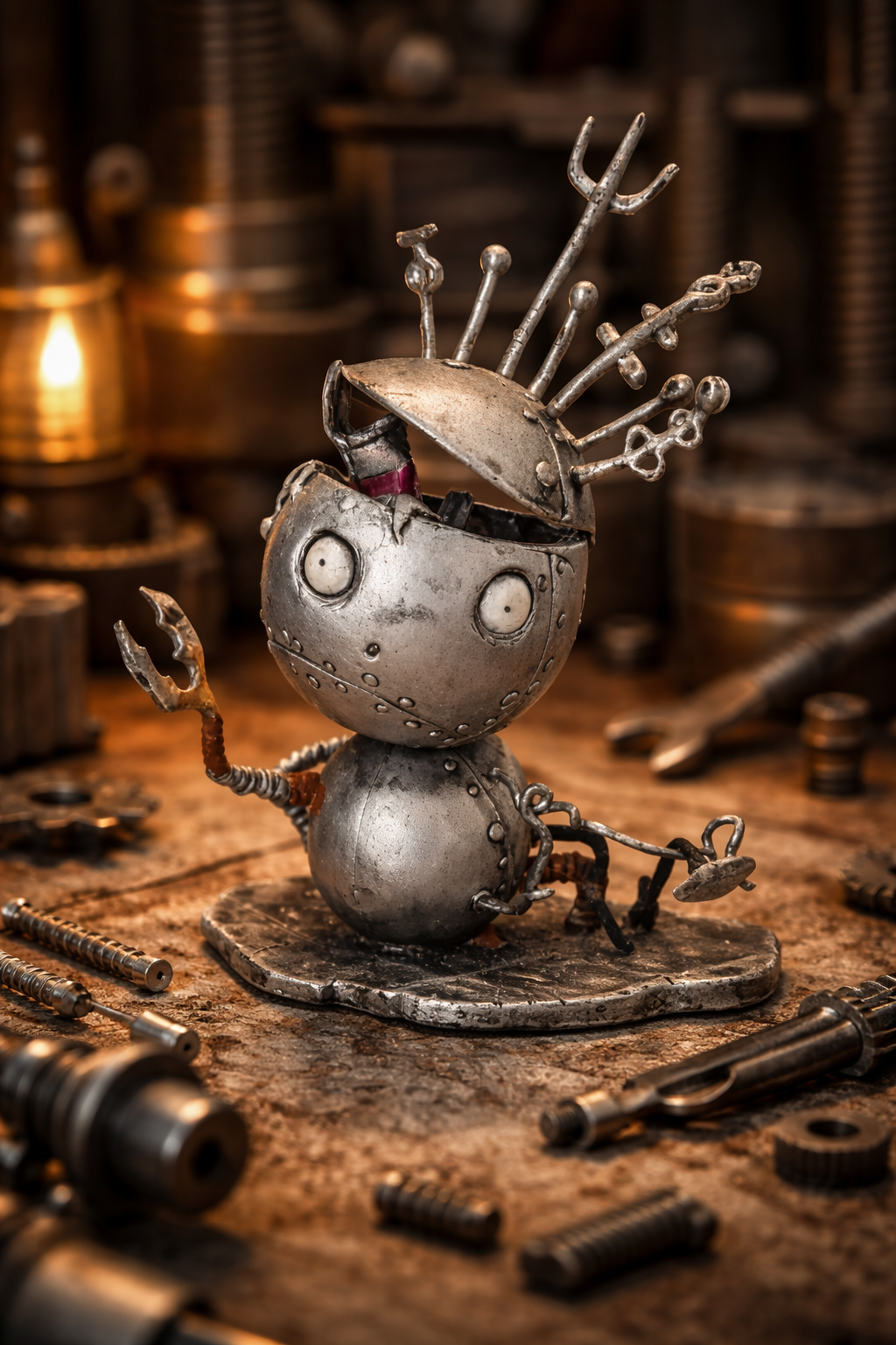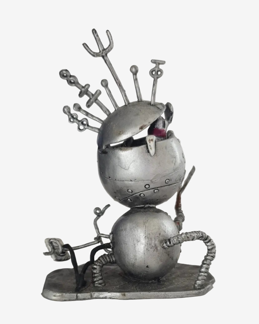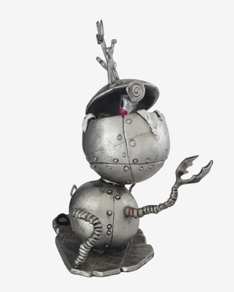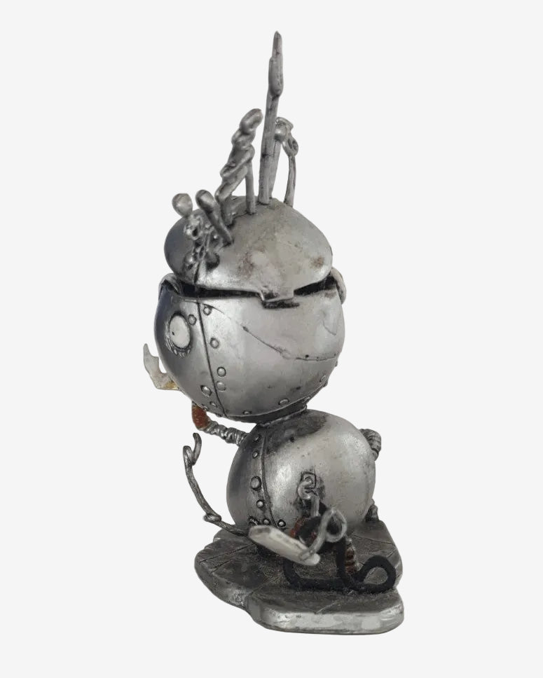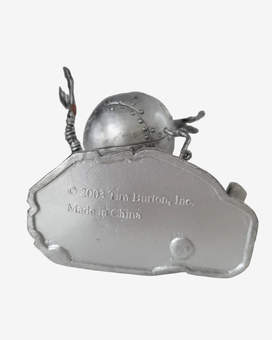 This small Robot Boy figure features the stitched metal body, rivet details, and odd mechanical pins that capture the dark-fantasy style Burton fans love. Released in 2003 as licensed merchandise, the figure stands on a sculpted base and makes a fun little display piece for collectors of gothic or Halloween-inspired memorabilia.