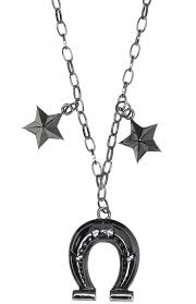 Brushed silver, zinc alloy chain, stars and horseshoe make this a go-to necklace for any day of the week. Rockabilly vibes!