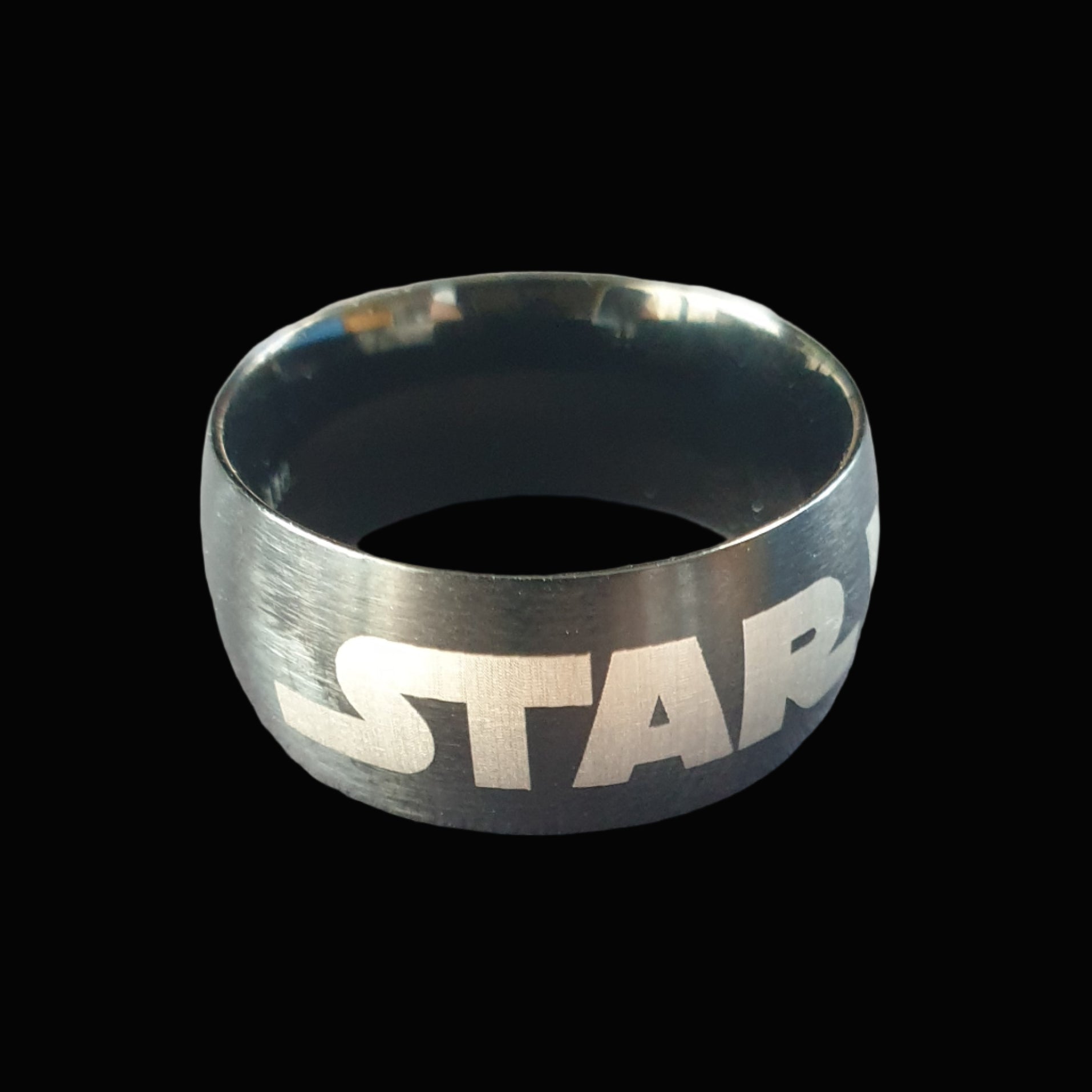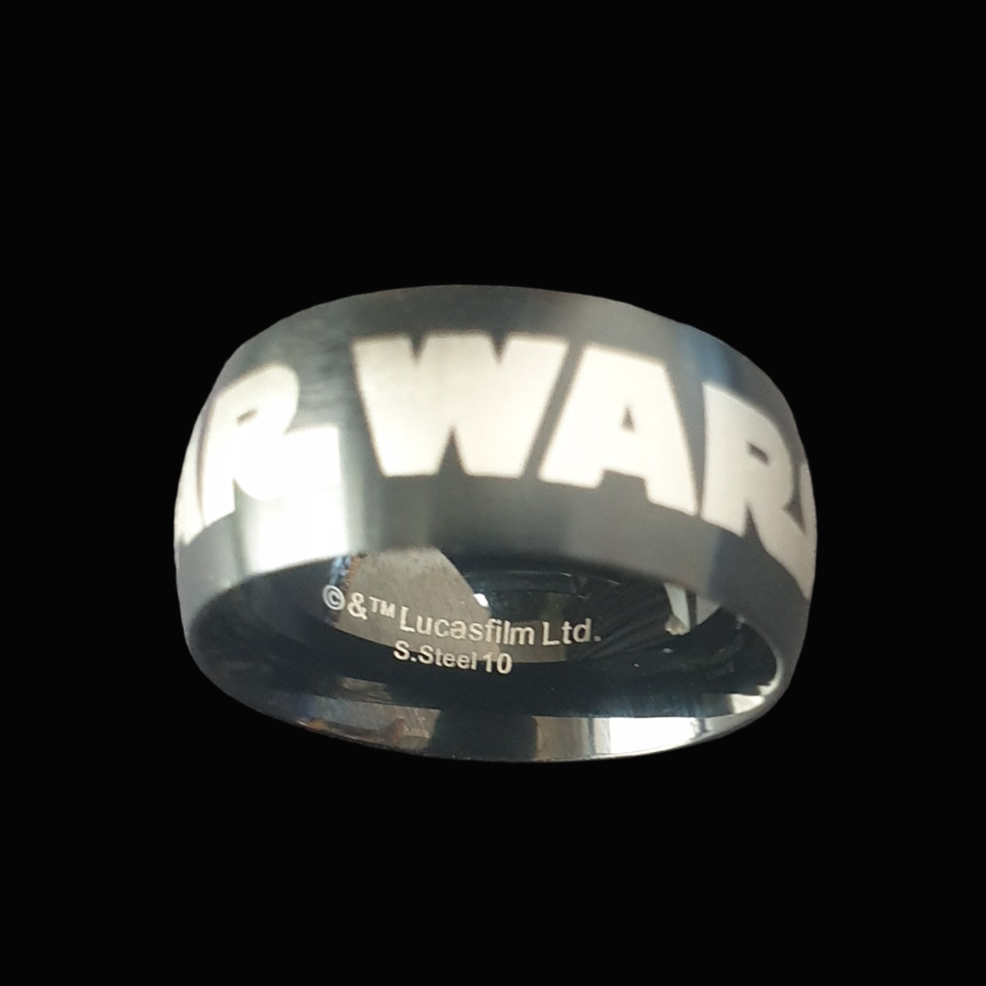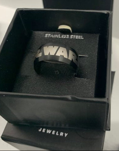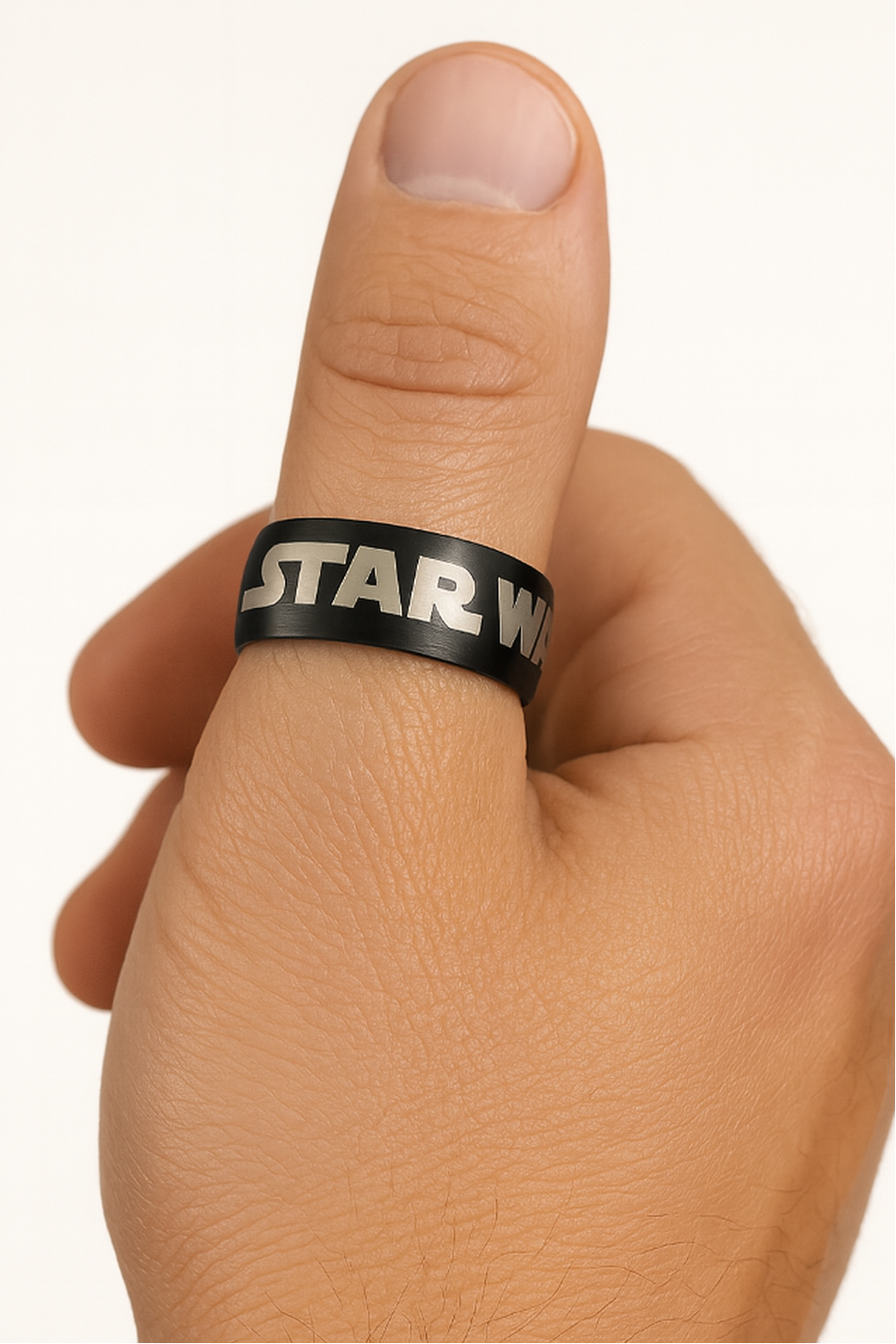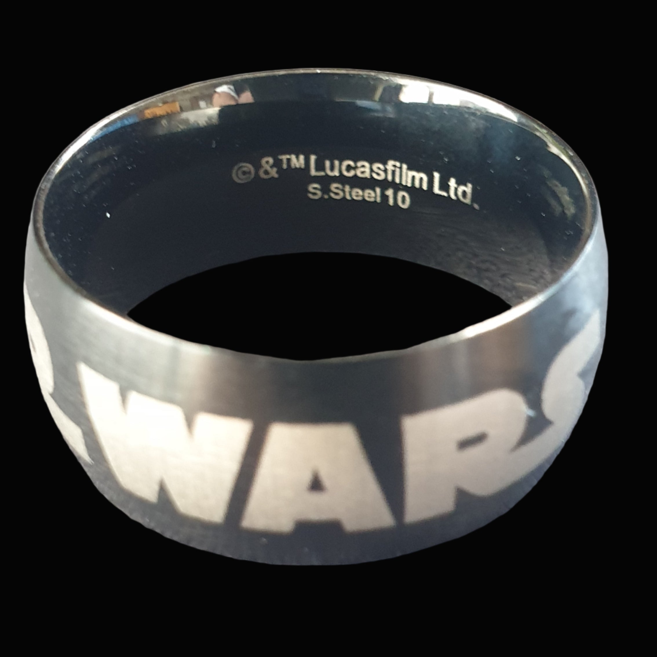Crafted from durable stainless steel, this ring withstands daily wear while maintaining its lustrous appearance. Gently rounded edges for comfort. Perfect for Star Wars enthusiasts who appreciate edgy design, this piece makes a statement without shouting about it. Ideal for gifting to fellow fans or treating yourself to wearable sci-fi nostalgia.