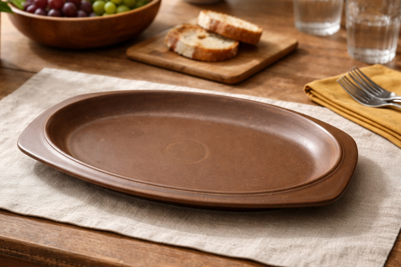 A very cool vintage Temuka NZ stoneware serving platter in a warm earthy brown glaze. This classic oval shape is simple, practical, and very easy to style, whether used for serving or as part of a relaxed table setting.