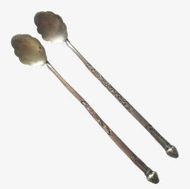 Vintage Brass-Tone Boho Serving Spoons – Pair