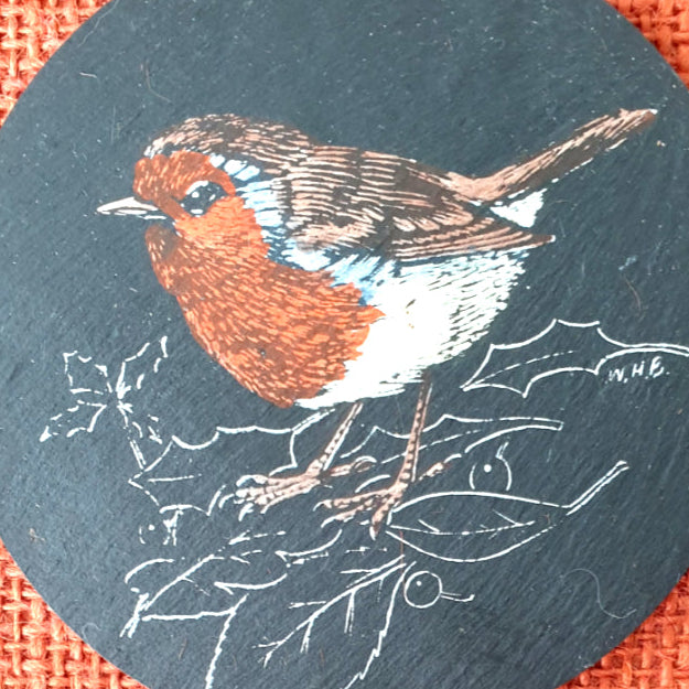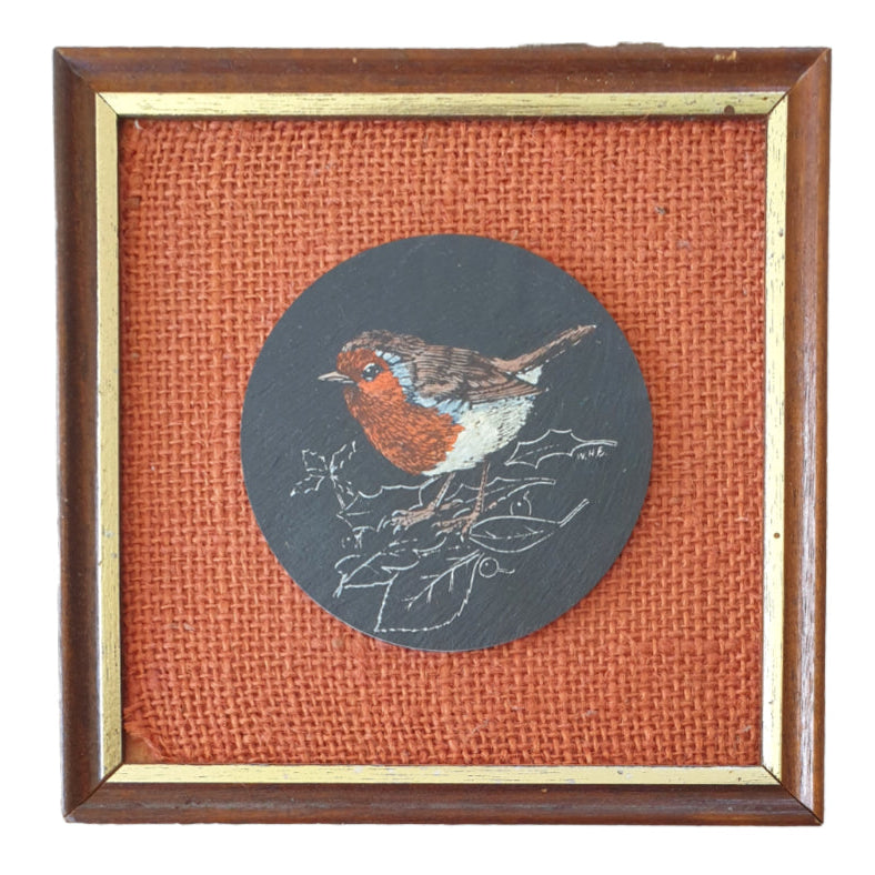 Both pieces are signed W.H.B. and retain their original frames. There is light wear to the frames and the backs are a little rough, as you’d expect with genuine vintage wall art. The robin frame has a small area of damage to the lower corner, visible on close inspection but not distracting when displayed.