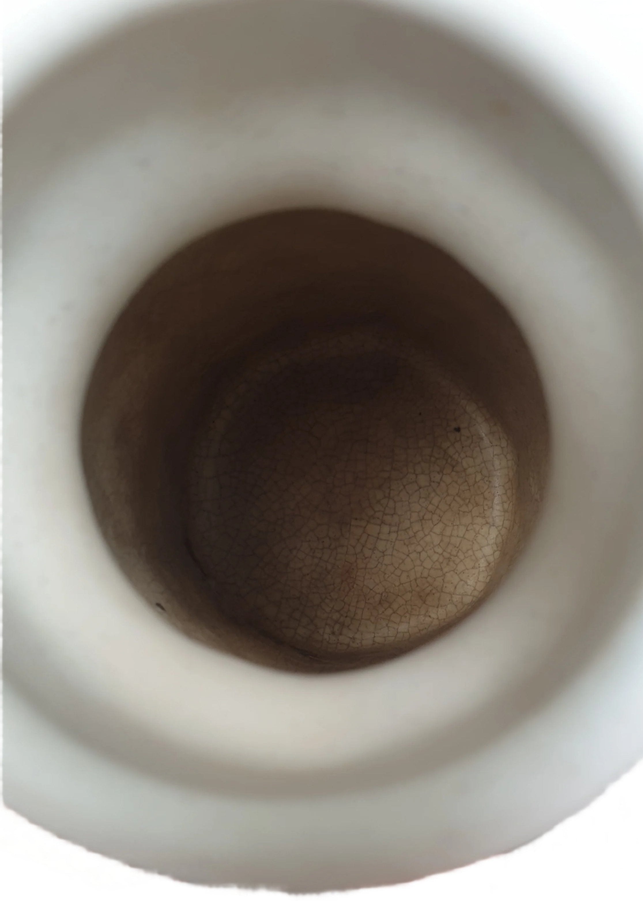 Condition is very good overall. There are no cracks or chips. Light crazing and some staining inside are present, consistent with age and use as a vase, and do not affect the exterior appearance.